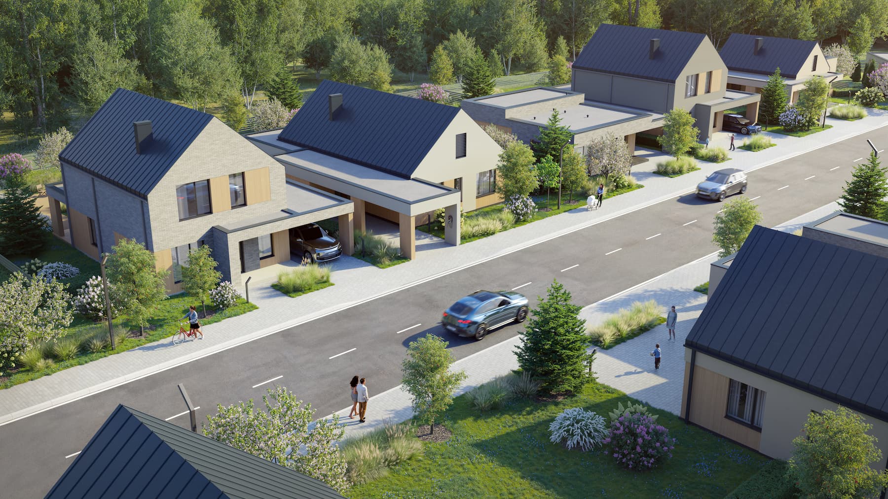 Голос Горожане — это место, где природа и архитектура создают уют и гармонию. Дома окружены березовым лесом и сочетают в себе комфорт городской жизни с красотой природы.